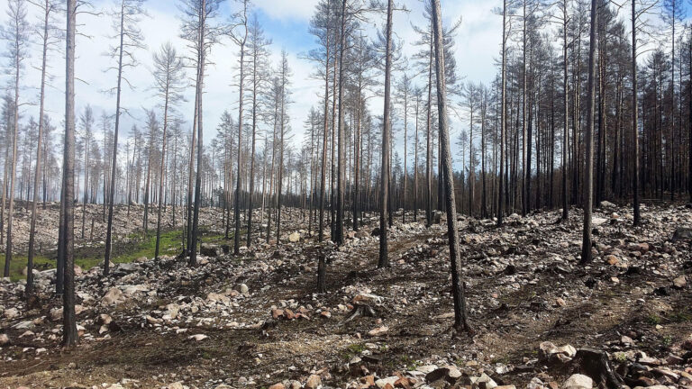 Direkt efter att branden upphört liknade brandområdet närmast ett svartfärgat månlandskap. Några enstaka träd hade överlevt här och var, och