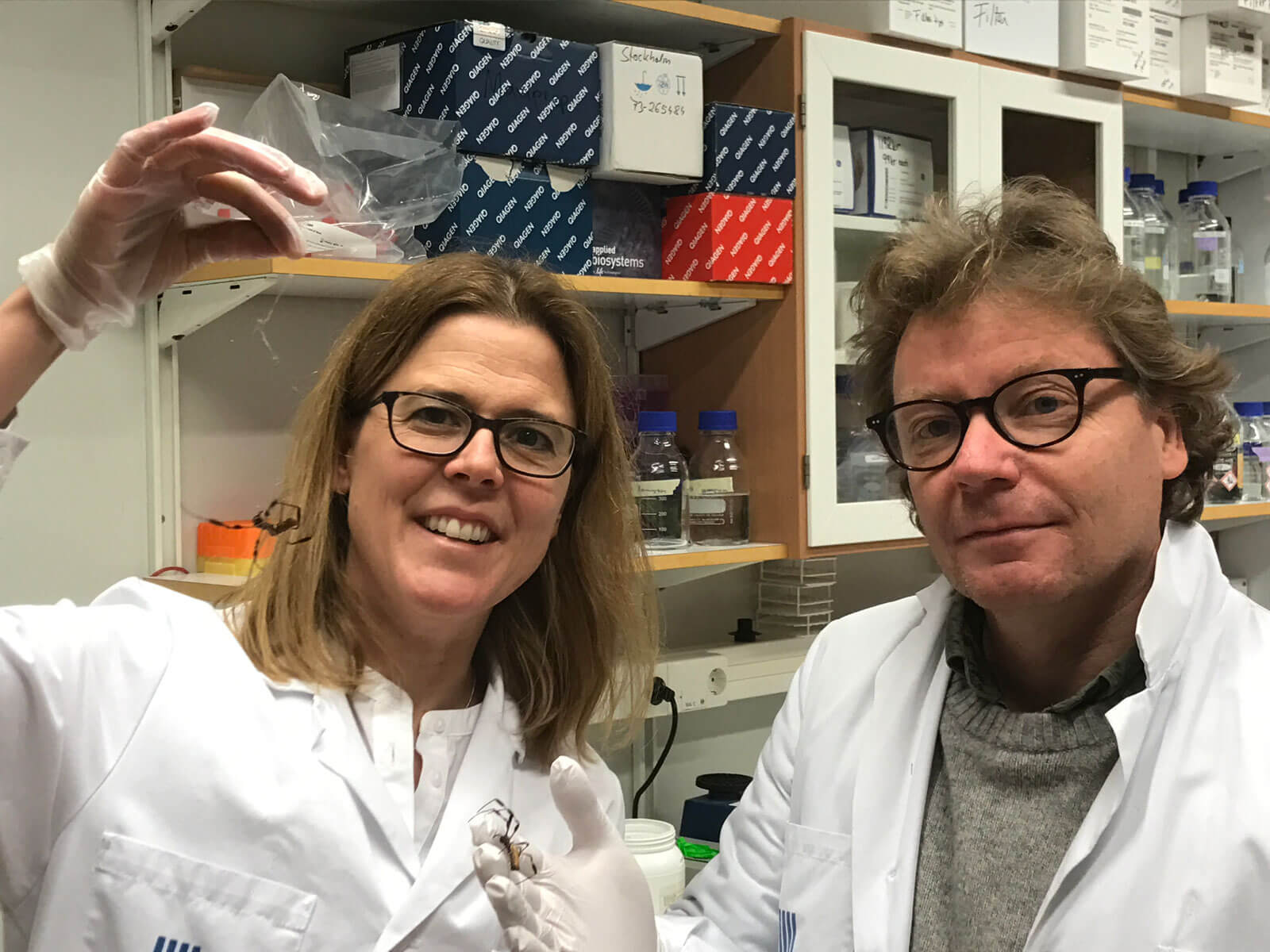 Anna Rising och Jan Johansson i forskarlaget som tar fram den syntetiska spindeltråden. Foto: Kerstin Nordling